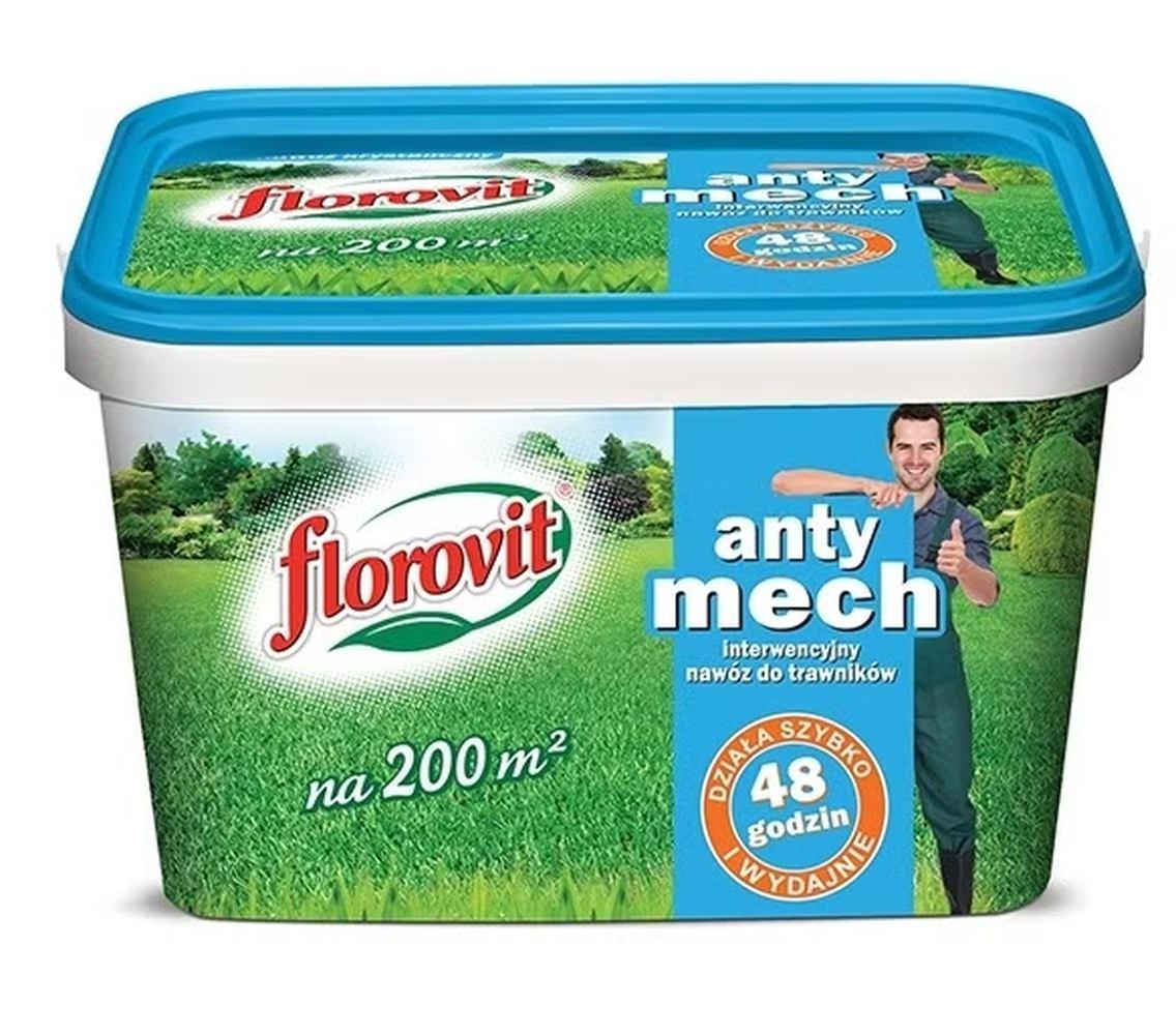 Nawóz Florovit interwencyjny ANTY MECH do trawników jest bardzo skuteczny i wydajny, został przeznaczony do stosowania na wszystkich rodzajach trawników wieloletnich, które mają problem z występowaniem mchu. Nawóz ANTY MECH umożliwia utrzymanie soczyście zielonej, dobrze wybarwionej, gęstej i zwartej darni trawnika bez mchu. Działa bardzo szybko, ponieważ efekt jest widoczny już w 48 godzin od zastosowania.
