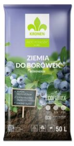 KRONEN® Ziemia do borówki to specjalnie skomponowane podłoże przeznaczone do sadzenia i przesadzania wszystkich odmian borówki. Ze względu na niskie pH (odczyn podłoża kwaśny), może z powodzeniem stanowić pełnowartościowe podłoże dla roślin kwaśnolubnych jak: rododendrony, azalie, wrzosy i inne. Zawiera ECOFIBREX® (dodatek z włókien drzewnych).