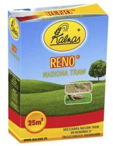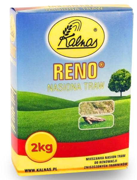Trawa regeneracyjna RENO KALNAS – Mieszanka traw do renowacji trawników, służy do odnowy zniszczonego trawnika oraz do uzupełniania ubytków. RENO jest najszybciej kiełkującą mieszanką traw, co pozwala na szybkie uzyskanie gęstej darni i wspaniałego trawnika. Mieszanka RENO szczególnie polecana jest do renowacji trawników w obiektach sportowych. Specjalnie wyselekcjonowany skład mieszanki o właściwościach regeneracyjnych, szczególnie do zniszczonych części trawników.